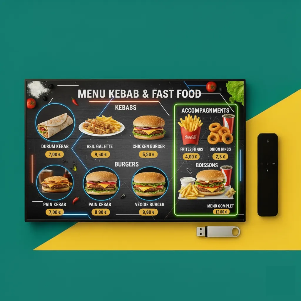 Menu Board Digital : Écran d’Affichage pour Restaurant, Kebab, Fast Food