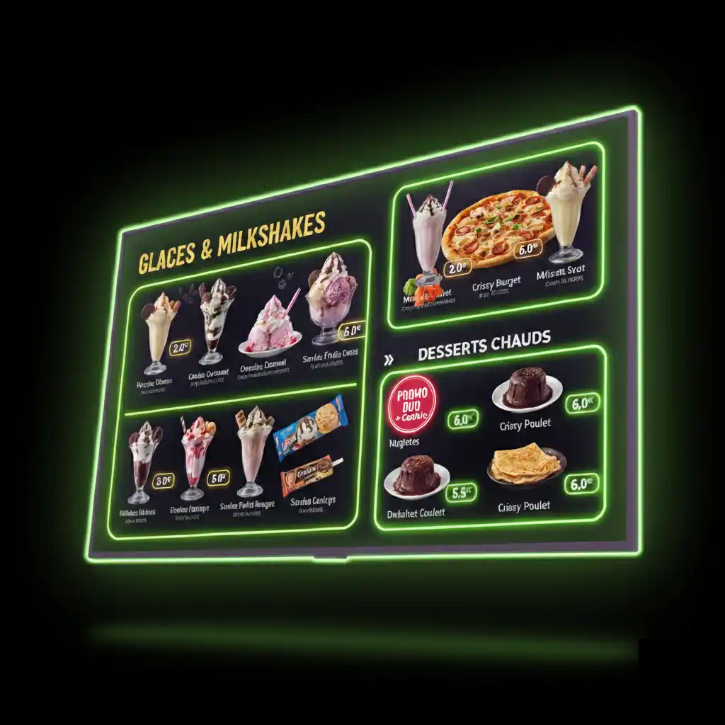 Nous proposons nos solutions de menu board digital et d’affichage dynamique pour les